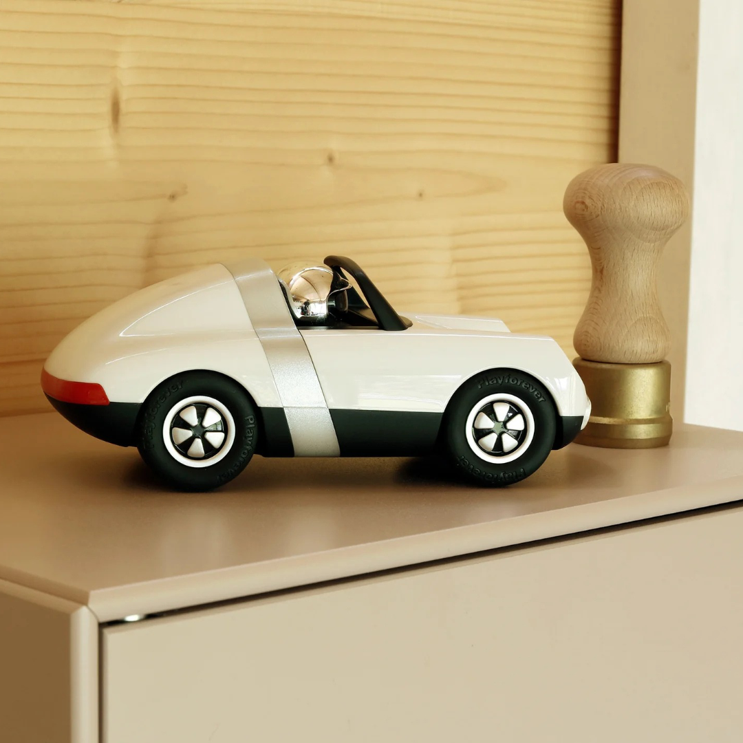 Avec son design épuré et sa silhouette fluide, la voiture Luft incarne l’esprit des voitures de course classiques revisitées par l’esthétique contemporaine de Playforever. Chaque courbe est pensée pour évoquer la vitesse, la précision et la liberté, tandis que sa construction robuste en fait un objet aussi agréable à manipuler qu’à exposer. Luft n’est pas seulement un jouet : c’est une pièce de design intemporelle, prête à traverser les générations.