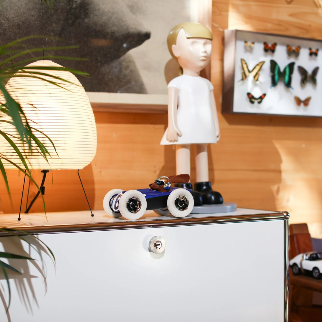 Avec son avant géométrique, sa crête distinctive sur le capot et ses courbes adoucies vers l’arrière, Rufus impose son style. Jouet robuste dès 1 an ou pièce de collection pour les amoureux de design, ce modèle s’inscrit dans la lignée raffinée de la collaboration Playforever × Hugo Boss.